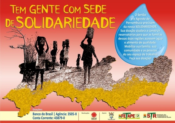 Doriel de Barros – Em conjunto. A Cáritas vai ser a entidade que vai receber esse recurso, mas a campanha é feita com o envolvimento de todos. Então fizemos cartazes e divulgamos para todos os sindicatos. Se as pessoas quiserem depositar alguma quantia, é pelo número da conta que tem nesse material de divulgação. No final, sentará a Fetape, a Arquidiocese e a Cáritas para ver o que foi arrecadado e quais serão os municípios e as comunidades que receberão esses investimentos.