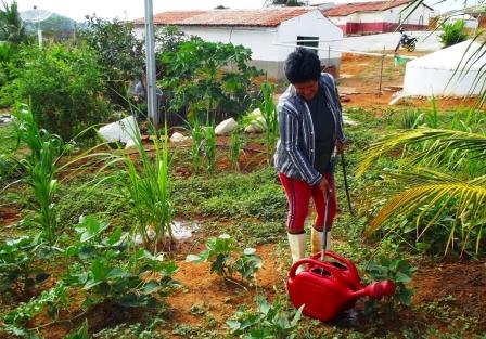 Antes da cisterna-calçadão, tinham a metade do que se tem hoje. Depois dela a forma de se planejar e produzir ganhou outra dimensão, o cuidado extremo em economizar água é indispensável, tudo é pensado para poupar e manter maior produtividade com segurança. O regador é um utensílio importantíssimo para a agricultora, que rega na medida certa, fazendo o controle do uso da água, sem que haja desperdícios. “Tem que ser tudo aguado com regador, eu tenho alguns coqueiros, mas a forma como eu faço é só pra manter a planta, coloco apenas a quantidade de água de um regador, ai segura o verde por muito tempo, eu sei que não vai dar o fruto, mas mesmo assim salvo a planta e economizo”, afirma Maria dos Remédios.