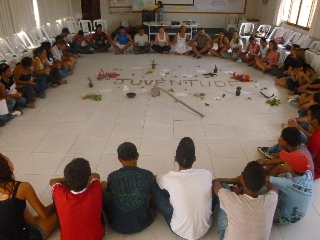 Gestão – No segundo e último dia de encontro a programação foi aberta com uma caminhada do refeitório até o auditório do encontro. Durante o percurso, eles entoaram cânticos e refletiram sobre o significado da terra e nossa responsabilidade em cuidar e preservar o meio ambiente para ter vida plena. Maria Leônia Soares fez uma apresentação da experiência dos Fundos Rotativos Solidários da Comissão de Saúde e Alimentação do Polo da Borborema cujo trabalho ajudou a romper com o isolamento social de muitas mulheres, a valorizar o seu saber e a articular o seu conhecimento por meio da troca de experiências com outras mulheres, visibilizando o seu trabalho e a sua contribuição para a agricultura familiar. Ao final os jovens discutiram as semelhanças entre as dificuldades enfrentadas pelas mulheres e as que os jovens também enfrentam: invisibilidade e desvalorização do seu trabalho, falta de liberdade e de autonomia, o preconceito, entre outras. Em seguida os participantes ouviram a experiência de Anilda Fernandes, que é gestora do fundo rotativo solidário do assentamento Oziel Pereira, em Remígio-PB onde vive. Para Anilda, a chave para o sucesso de um fundo como esse é a transparência, o comprometimento da comunidade e a paciência: “Eu sei que os jovens tem aquilo de querer tudo pra agora, mas é preciso ter paciência, pra chegar onde chegamos, houve todo um processo até os primeiros resultados chegarem”, disse a agricultora.