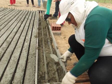 As cisternas são construídas por duplas. Evenir Hipólito, cisterneira formada neste treinamento, tem como dupla outra mulher e sobe isso, arremata: “o trabalho é cansativo, mas não é nada que não façamos bem feito. Vamos prosseguir e quebrar os preconceitos”.