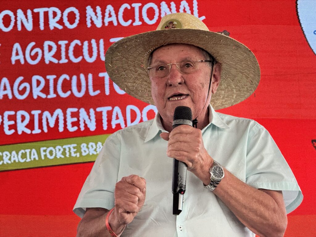 O agricultor familiar João Aparecido de Sousa, da Serra da Capivara, no Piauí, refletiu sobre a importância do diálogo da plenária e da alimentação agroecológica. Para ele, a sua comunidade vivencia a insegurança alimentar devido à realidade diária da falta de água no território.