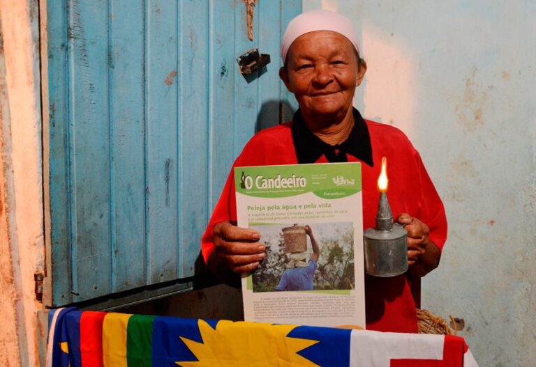 Dona Gertrudes e O Candeeiro que traz suas histórias (Foto: Romário Henrique / Serta) A história de Gertudes Josefa da Conceição, 68 anos, foi registrada no informativo O Candeeiro, do Programa Uma Terra e Duas Águas (P1+2), que já sistematizou…