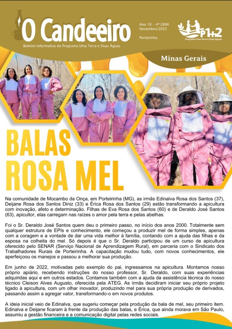 Na comunidade de Mocambo da Onça, em Porteirinha (MG), as irmãs Edinalva, Deijane e Érica Rosa dos Santos estão transformando a apicultura com inovação, afeto e determinação. Inspiradas pelo pai, o apicultor Deraldo José Santos, elas decidiram seguir seus passos…
